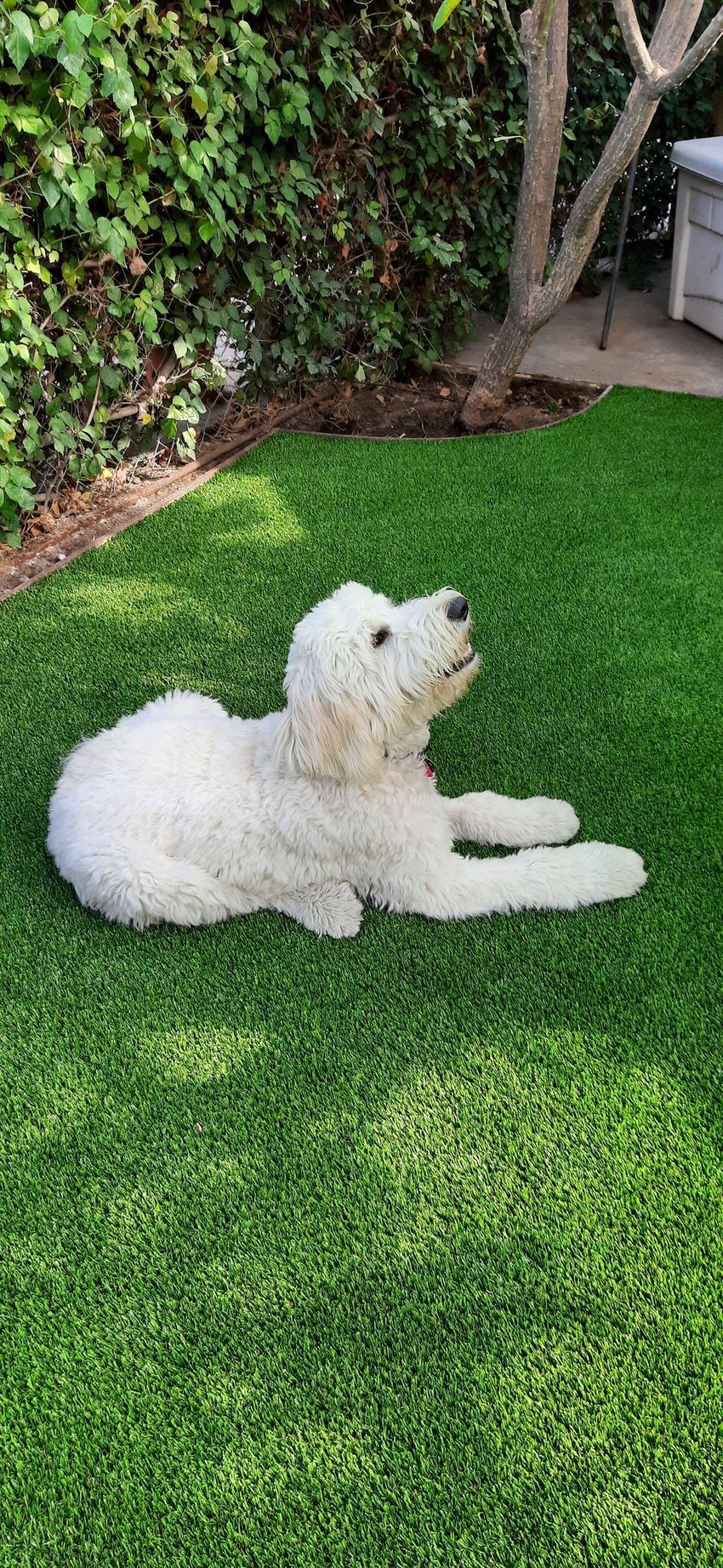 Your furry friend tracking mud into the house during the winter season will also be a thing of the past. Face it, it’s frustrating having to wait at the door and wipe four paws on every pet, much less wipe the dirt and dust off your dog’s coat year round. Dogs love rolling around on our artificial pet grass, and you’ll love not having to clean your pooch’s coat every time they come inside.